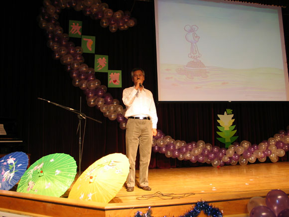 晚会中,丁院长为大家献上的《北国之春》,让新同学们备感温暖。