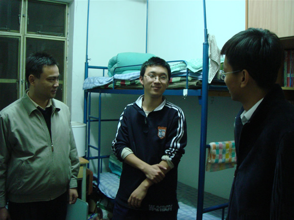 领导们还询问了同学们在学习上存在的问题。例如在选课方面、课堂知识接受情况、课下自习同宿舍人的相互监督情况,并且提出了希望他们能够充分发挥宿舍的力量,以“小家”带动“大家”的殷切希望。