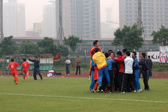 时间终于一分一秒的过完了30分钟,点球大战不可避免的到来了,这个时候,全体队员和所有啦啦队员反而有些轻松了,因为点球决战考的就是基本功和智慧,我校足球队在所有的正式比赛的点球大战中除了上海大运会一次之外,几乎从来没有输给过对手。
