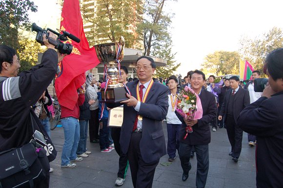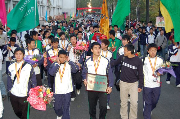 庆祝仪式结束以后,全体足球队员在师生员工和球迷的簇拥下从主楼步行至体育馆北侧,返回驻地,进行休整,据悉,11月25日左右,我校足球队将与文体界明星足球队参加在广西柳州市举行的义赛,为希望工程筹款。12月初,我校足球队还将赴日本参加中、朝、日、韩四国大学生足球邀请赛。