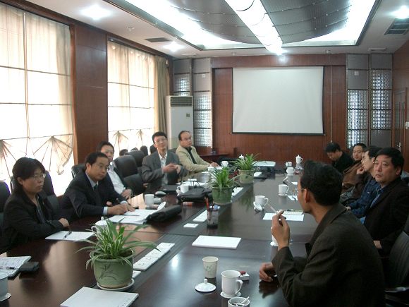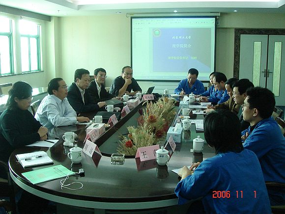 理学院党委书记何明向西南技术物理研究所领导介绍理学院的情况