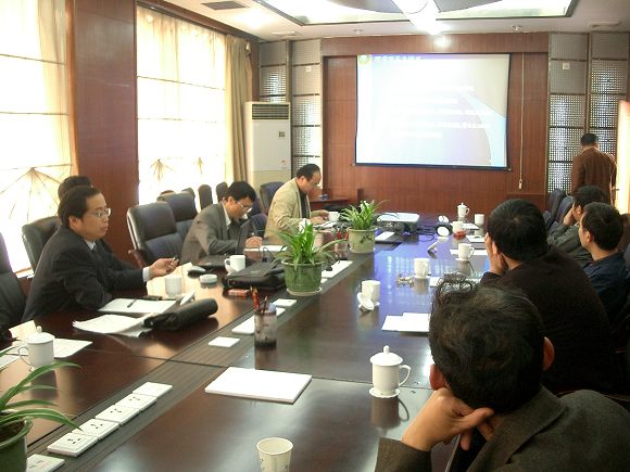 理学院副院长胡长文教授向中国工程物理研究院领导与技术人员介绍理学院化学系主要研究方向和成果。