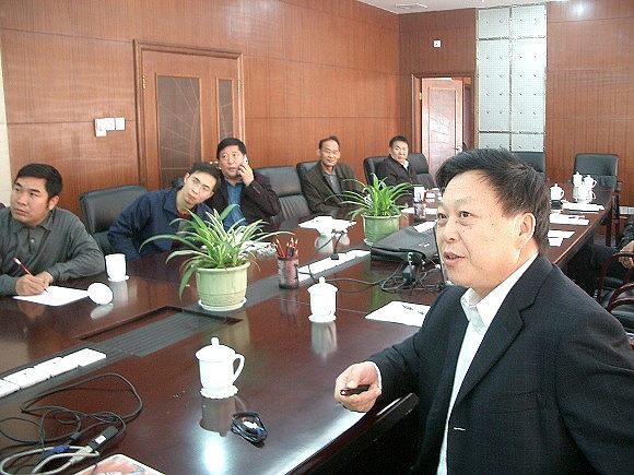 理学院数学系副主任田玉斌教授向重庆红宇精密工业有限责任公司介绍数学系科研工作的主要方向和成果。