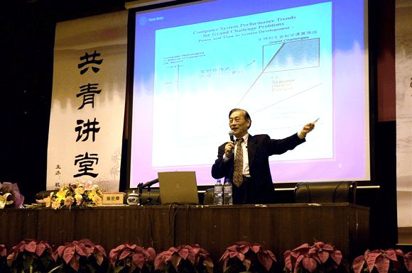 “共青讲堂”系列讲座首场报告于11月9日19:00在七教报告厅举行。美国国家两院院士、著名计算机科学家、超级刀片计算机之父陈世卿博士应邀为广大学子带来了一场非常精彩的讲座。