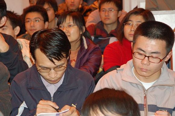 接下来的提问时间里,场下观众踊跃提问,陈先生一一作了耐心的回答。当被问到“您的成功最应该归功于什么素质,或者什么是您事业的驱动力?”时,陈先生的回答是执著和兴趣。他回忆了自己的经历,教导我们要培养自己的兴趣:不要因为金钱原因而频繁的跳槽,确定了方向就要坚持下去,出成果是自然而然的事情。还有一位同学问到“在您构建医疗系统的过程中,政府、资金、员工素质等,那些是您遇到的问题?”。陈先生儒雅地一笑:“所有这些都是我所遇到的问题,但不能因此而却步……共同的理念融化一切困难!”我们深深感到了陈先生的豪迈和自信,以及团结在他周围的团队成员的成城斗志。