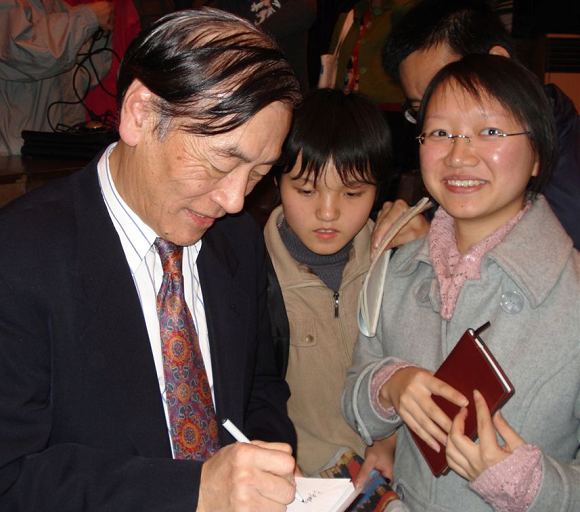 随后,陈先生就被同学们包围了,不少同学都主动和陈先生交流并和陈先生合影留念,并请陈先生签名,他都和蔼地满足了广大同学的要求。