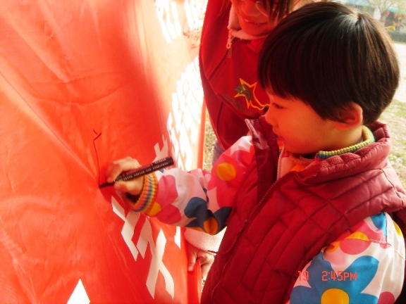 热心的一些市民同志在赞赏我们义务宣传奥运的同时还提出了很多好的建议,值得我们借鉴。每个前来观看的市民都在“新北京,新奥运,我们都在努力中……”的横幅上庄严的签上了自己的名字,并留下了对08奥运的寄语,这既是一份对奥运的期待,也是一份对祖国未来的祝福…… 。活动在进行了将近两个小时后结束,同学们忍受着寒冷自始至终都保持着高昂的激情在自己的岗位上一丝不苟的工作,为奥运宣传添姿添彩。