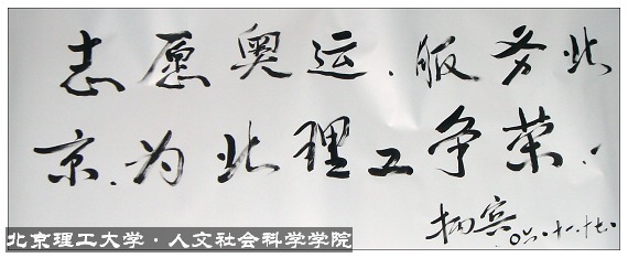 党委副书记、副校长杨宾老师的题词:志愿奥运,服务北京,为ob真人增荣
