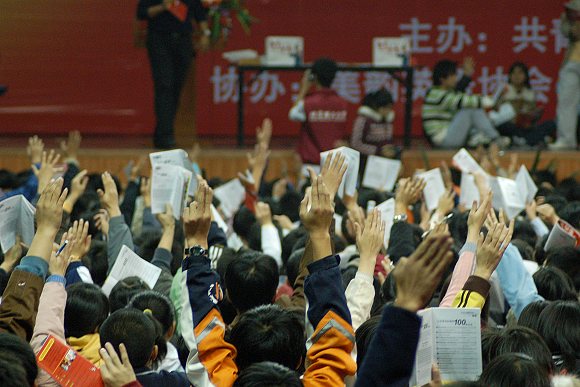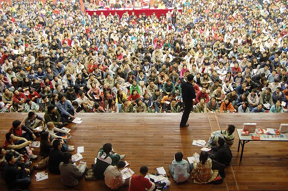 李阳老师不仅给大家指导了在英语本身语法、发音等问题,还用其独具特色的本领疯狂地“喊”出了奥运精神,他讲道:“要把英语的学习与奥林匹克精神结合起来。奥林匹克精神就是相互了解、友谊、团结和公平竞争的精神。竞是一种向上的态度,竞是一切梦想的起点,竞是自我超越的勇气,竞是永不言败的斗志。这些都是我们在学习英语中必不可少的信念和精神。” 同学们热情高涨,现场气氛异常热烈。此外,这次活动还吸引了来自西班牙的外国友人的眼球。