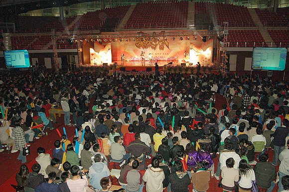 台上选手的精彩表现,感染了台下每一位观众。他们完全将自己的情绪同选手们连同在一起。手中的荧光棒随着音符轻轻摆动,一块块写满祝福的标语牌在会场中摇动,他们毫不吝惜自己的掌声,为选手们加油鼓劲,展示了理工人特有的热情。