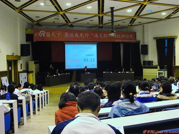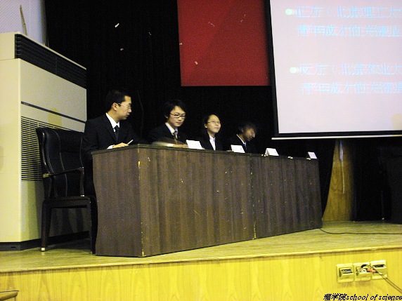 2006年11月19日晚,ob真人七号楼报告厅成为了四校理学院辩论英才会聚一堂的胜地。来自北京航空航天大学、北京科技大学、中国农业大学和ob真人四所学校的理学院辩论队在此掀起辩论风云,唇枪舌剑尽显风流。