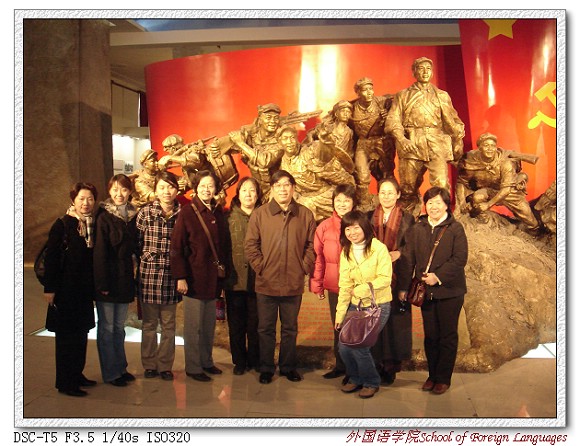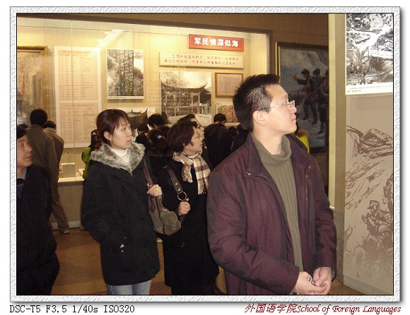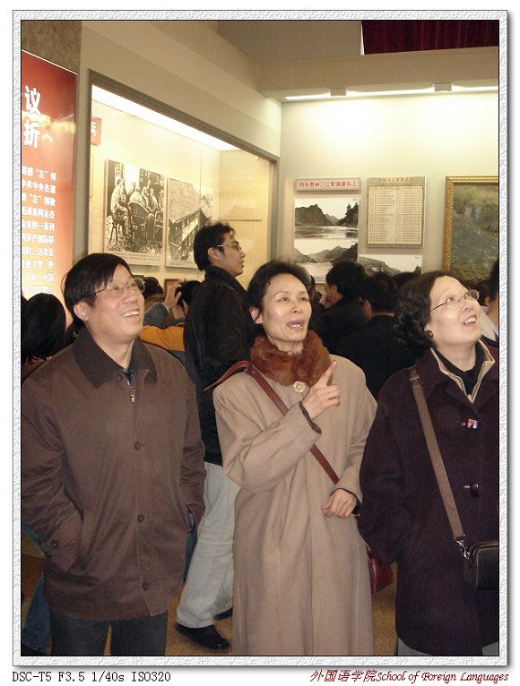 在纪念中国工农红军长征胜利70周年之际,外国语学院师生党员代表在院党委书记王文清、副院长林彤和副院长、副书记吴文君老师的带领下,于11月24日下午赴中国人民革命军事博物馆参观了“伟大壮举,光辉历程——纪念中国工农红军长征胜利70周年展览”。