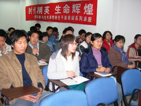 之后,丁秘书长把更多的时间留给了与同学们进行交流。各社团学生干部就奥运方面和工作方面的问题进行了提问。当谈到如何提高学生干部的工作能力时,丁老师特别强调了工作计划的重要性,他向学生干部们着重介绍了一下自己所负责的庞杂的奥运组织工作,和工作组织体系,并希望学生干部在举办各种活动时要把更多的时间投入到活动计划中,并要严格的按照计划落实到每个人。丁秘书长还结合自己应聘奥组委的亲身经历,介绍了奥组委对工作人员的要求,奥运工作人员的奉献精神,让同学们印象深刻。丁秘书长在互动环节中还向部分同学赠送了奥组委内部徽章,同学们反应热烈。