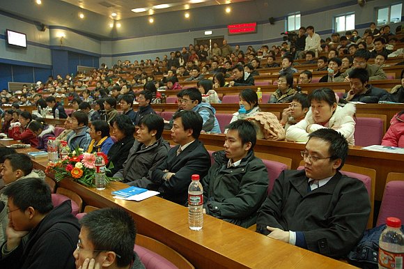 “共青讲堂”系列讲座第七场于12月11日19:00在中教一楼报告厅举行。主讲嘉宾计算机教育大师谭浩强教授为广大理工学子带来了名为《走向成功之路》的精彩讲座。在主持人简要介绍了谭教授在计算机普及教育领域的非凡成就之后,校团委张启鸿书记致词对其表示欢迎。张书记强调,共青讲堂是为了开拓同学们的视野、推进校园文化建设而举办的,是同学们的节目,因此希望同学们多提意见,帮助共青讲堂做得更好。