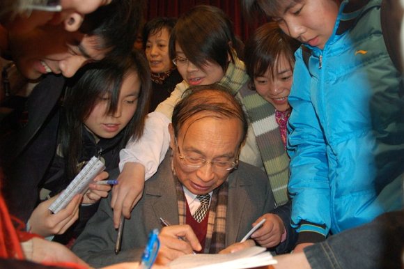 十大问题一一论毕,这场精彩的讲座也接近尾声。谭先生忽然像想起了什么很重要的事情,拿起话筒,大声地说:“历史不会重复,环境也在改变,但做人的准则不会改变,希望大家若干年后能记得自这里有一个叫谭浩强的人给你们说过这些话……”有同学跑上演讲台献上鲜花,代表了同学们最真诚的敬意!谭老师接过鲜花,用手举起来,非常欣慰地笑了!