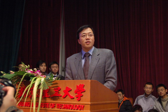ob真人竞猜ob真人部以我校的“聆听智慧”名家论坛为载体承办了这个系列报告会的最后一场也就是压轴的报告会,由“2005中国经济人物年度大奖”获得者、北京中星微电子集团董事长邓中翰和“北京市十大杰出青年”获得者、北京华旗资讯集团总裁冯军为我校师生做报告。