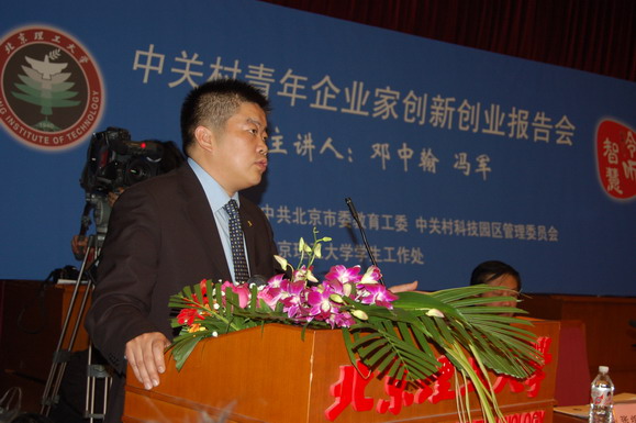 “中关村青年企业家创新创业报告团”团长、中关村科技园区管理委员会主任戴卫首先发表讲话。他向同学们介绍了报告团成员的简要事迹和中关村科技园区的基本情况。他说:“中关村是中国高新技术产业自主创业的发源地;是中国高新技术创新投资的热谷;是经济、教育、科技体制改革的先行试验地;是培养高素质人才的基地。在中关村实现了中国制造向中国创造的转变,演绎着技术、创新、财富的奇迹。”他勉励同学们在大学期间要敢于自主创新、要培养刻苦学习、钻研的精神和强烈的市场竞争意识。