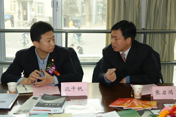 12月24日上午,团市委副书记沈千帆、团市委大学中专部副部长刘蓉参加了我校第六届世纪杯学生课外学术、科技竞赛开幕式,并与到会的校领导共同为开幕式剪彩。在开幕式开始前,沈千帆副书记和刘蓉副部长与我校党委副书记副校长杨宾、副校长赵长禄、副校长赵显利等校领导及学校部处领导会面并进行了亲切交谈。开幕式结束后沈千帆副书记和刘蓉副部长在校团委工作人员的陪同下对我校学生电视台等素质教育基地进行了视察,随后与我校团委、部分学院的分团委书记以及学生会、研究生会、学生社团联合会的主席在新学生宿舍一号楼二层会议室就我校近期团学组织工作进行了座谈。座谈会由校团委书记张启鸿主持。