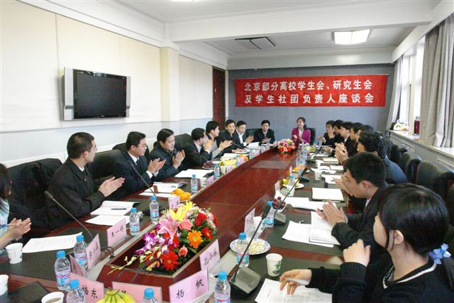 2007年1月8日下午北京高校学生会、研究生会及学生社团负责人座谈会在ob真人竞猜主楼二层会议室隆重召开。