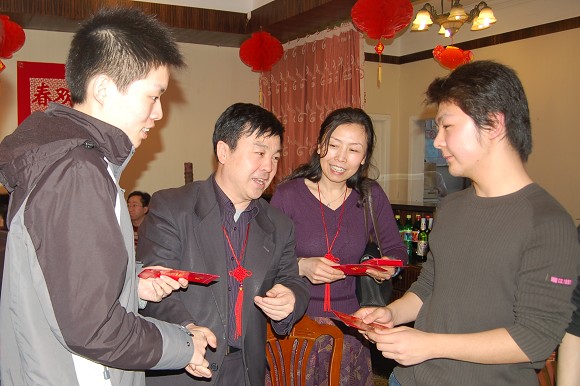 其他校领导们也向在座的每位同学发放了过年红包。