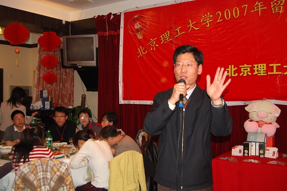 党委书记焦文俊发表了热情洋溢的讲话,他祝愿同学们在北京也能过一个欢乐祥和的春节,并祝大家学习进步、心想事成!