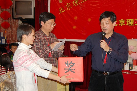 联欢会中间还邀请校领导进行了多次抽奖活动。