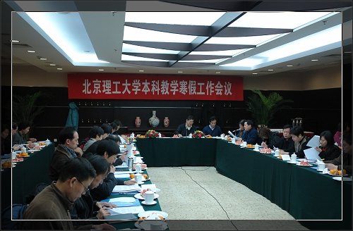 2007年2月8日至9日,学校本科教学寒假工作会隆重召开。党委书记焦文俊、原常务副校长李志祥教授、党委副书记赵平、副校长孙逢春等校领导,校长助理、教务处处长庞思勤,各职能部门评估工作负责人,各学院教学副院长,教务处各科长参加了会议。会议学习了教育部教高[2007]1号文件和学校工作会议精神,讨论了2007年学校本科教学工作要点,部署了本科教学评估工作等。