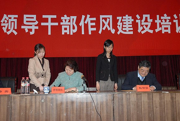 会上,党委书记焦文俊代表学校党、政与我校十二个学院的书记、院长签署了2007年工作任务责任书;学校主管领导与部分相关职能部处领导签署了2007年工作任务责任书。
