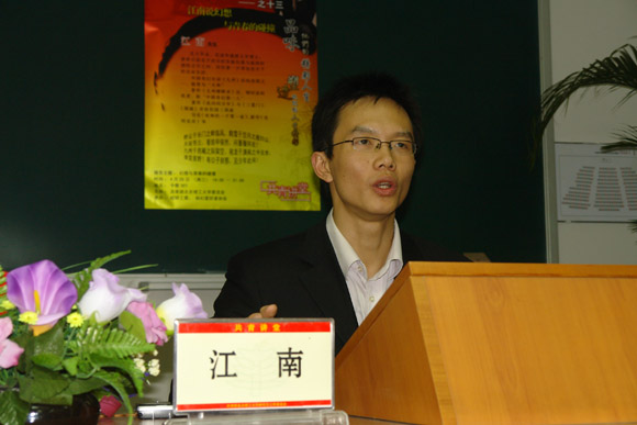 4月25日晚,著名东方奇幻小说家江南先生成为“共青讲堂”第十三位嘉宾,应邀来到我校与我校同学作近距离交流。江南先生在广大高校学子之间有着非常高的知名度,演讲所在的教室早早地就坐满了翘首以盼的热心观众。到了七点,主持人走上讲台,还没来得及宣布,观众已经发觉了江先生的到来,不约而同地鼓起掌来。