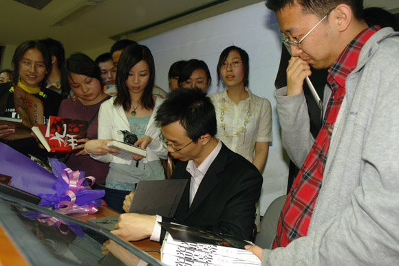 虽然台下观众依然热情如潮,主持人却不得不宣布演讲结束了。不待江先生走下讲台,却已被索要签名的观众团团围住。签名过程持续了近半小时。
