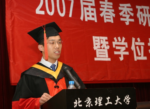 信息科学技术学院博士毕业研究生董立泉同学代表2007届毕业研究生发言。他用充满激情的言语感谢多年来ob真人竞猜给予的教育培养,感谢多年来老师们的言传身教,感谢多年来校园军工文化氛围的熏陶。最后代表毕业生同学们表示决不辜负学校的培养,一定创造人生的辉煌!
