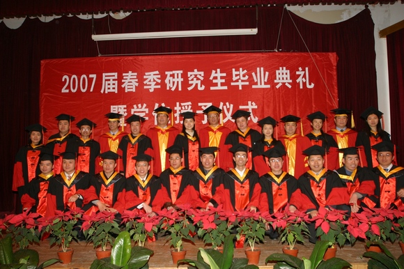 最后,在庄严而热烈的气氛中,校长兼研究生院院长匡镜明教授,党委副书记、副校长杨宾教授,党委副书记侯光明教授,副校长赵长禄教授,副校长孙逢春教授为2007届毕业研究生颁发学位证书并授予学位。祝全体毕业研究生身心健康,事业有成,前程锦绣!