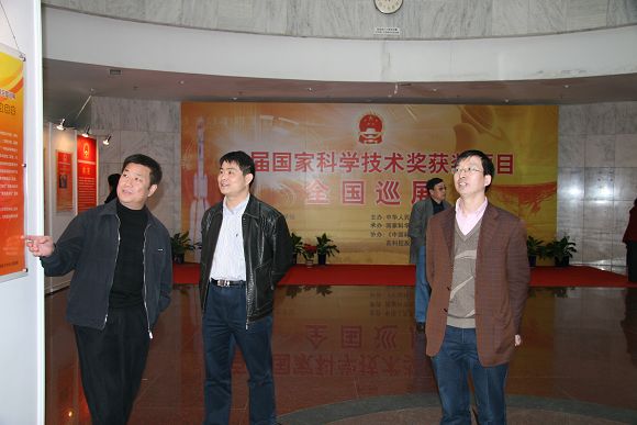 “首届国家科学技术获奖项目全国巡展”的第二站于2007年4月6日-9日在我校展出。包括我校孙逢春教授主持完成的“一种电动车辆动力系统关键技术产品及其应用”,吴锋教授主持完成的“镍氢电池、电池组及相关材料产业化关键技术的研究与系统集成”在内的100余项国家科学技术奖获奖项目在此次巡展展出。这些获奖项目集中反映了近年来我国科学技术工作者在自主创新、推动科技与经济的结合、促进人类社会可持续发展等方面所取得的丰硕成果。国家科技奖励办公室副主任胡晓军一行来到我校,在赵长禄副校长、校长助理陈杰等陪同下参观了展览。赵校长向胡晓军副主任介绍了我校“十五”以来科技获奖成果,并介绍了我校在本次巡展上的参展项目。