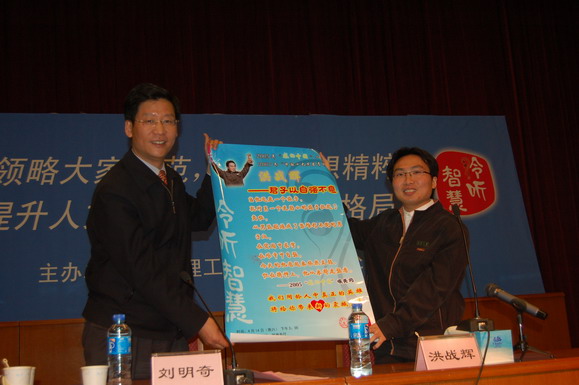 2005年“感动中国”人物、2007年“中国十大杰出青年”、中南大学学生洪战辉2007年4月14日下午2点在中心教学楼一层报告厅,为我校师生做了题为《君子以自强不息》的讲座。