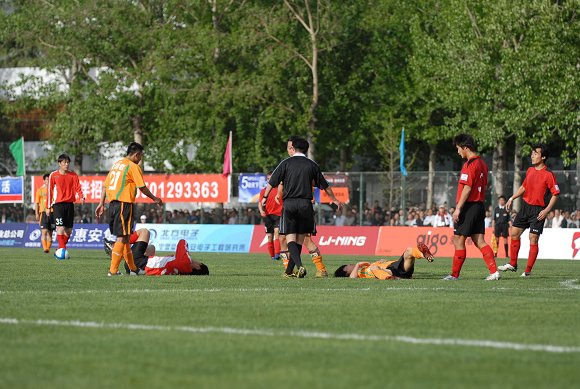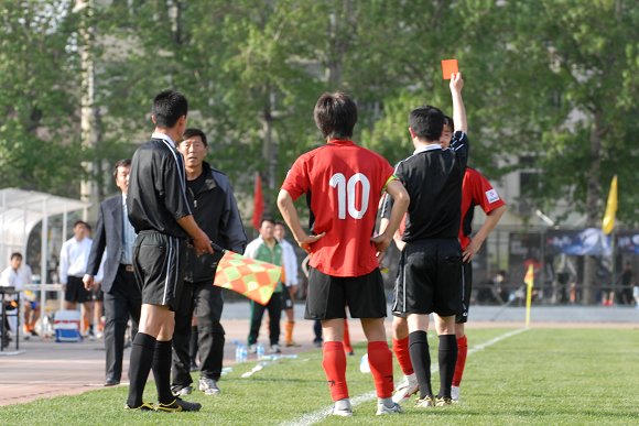 但仅过了7分钟,延边队2号同样由于危险动作,也被红牌罚出场外。为此,延边队主教练还上来与边裁发生了争执,险些被罚出场外。接下来的比赛,双方的失误都明显增多,火药味也浓了起来。最后学生军凭借顽强的精神,将1:1的比分保持到了终场,双方握手言和。