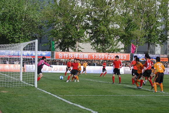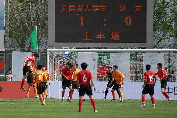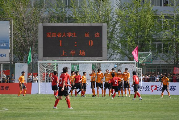 就在上半场第21分钟爱国者大学生队队长袁微再度杀入禁区,可惜身体不及延边队,被延边队“双鬼关门”。表现出色的还有爱国者大学生队的门将1号,上半场22分钟,延边队一纪长传,多亏门将及时出击,在禁区外的侧挂救险,才化解了学生军的险情。