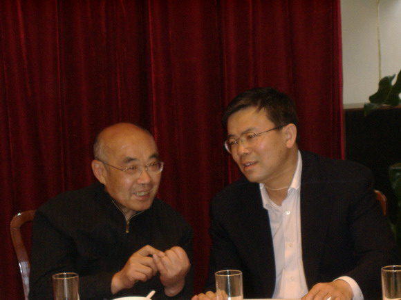 党委副书记赵平同志与ob真人原党委书记谈天民同志亲切交谈