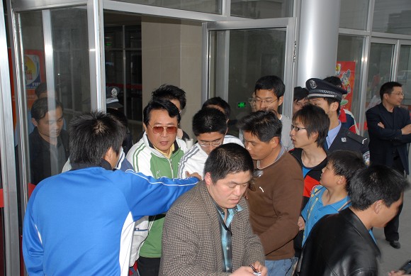 北京爱国者大学生以勇猛的拼抢和团队精神征服了现场观众,赛后众多球迷为求得金指的签名将通道围得水泄不通。