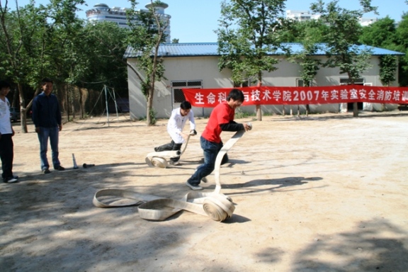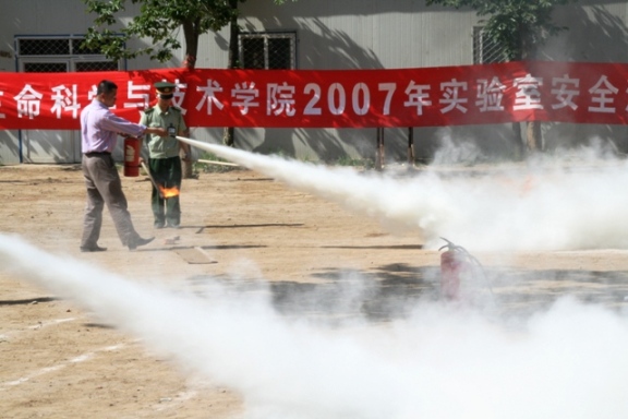 2007年5月14日下午两点,生命科学与技术学院在保卫处戊区操场,举办了实验室消防安全培训活动。校党委侯光明副书记,赵平副书记;校保卫处李汉军处长,娄荣生副处长,康明副处长,霍俊斌副处长;校实验设备处刘云飞副处长;生命科学与技术学院党总支李兰东书记,邓玉林院长,唐晓英副院长,庞思平副院长等校院两级领导亲临现场指导。本次活动由生命学院唐晓英副院长主持。