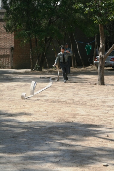 灭火器使用演练结束后,保卫处的保安同志还为师生们演练了消防水带的展开和连接,我院在读研究生专业消防参谋朱勇上尉还为大家详细讲解了水带展开和连接的技术细节,师生们获益匪浅。部分同学还亲身演练了该项目。