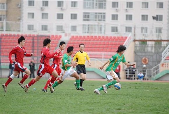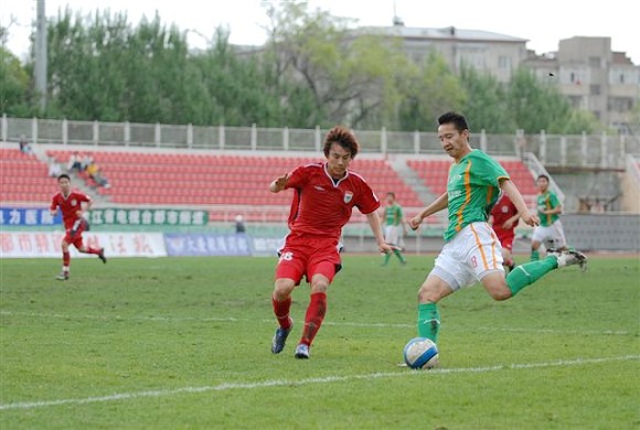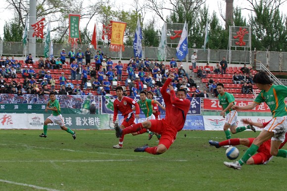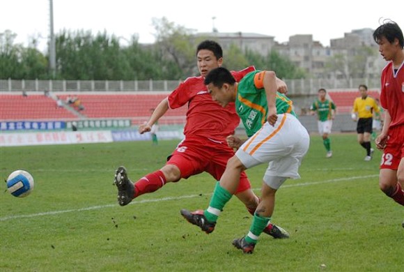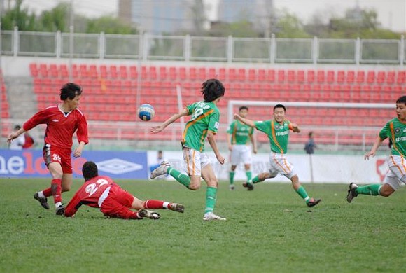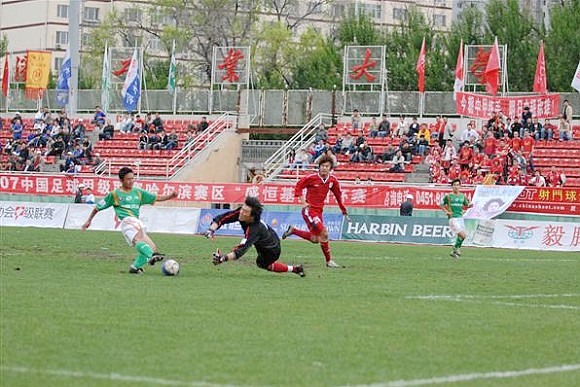 同时,孙祯铎的头球也吹响了毅腾队进攻的号角。上半场十分被动的毅腾队突然获得了主动。第80分钟时,毅腾队有路获得前场任意球,吕建军将球发到左路后,毅腾队员迅速起球,韩国外援陈顺珍高高跃起,将球砸向球门,皮球应声入网,1-0。
