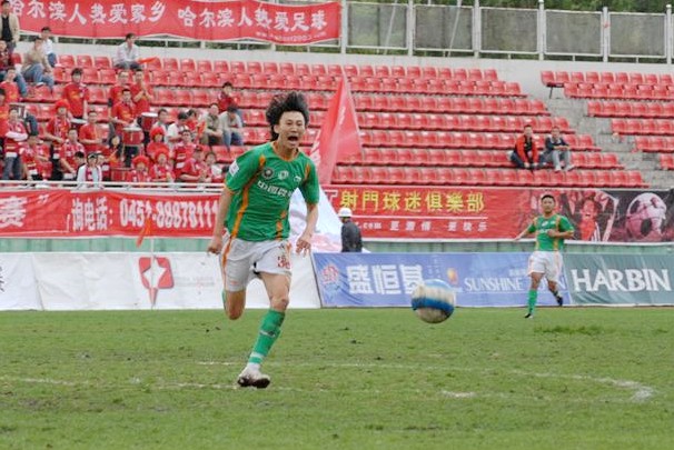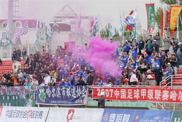哈尔滨球迷在庆祝进球