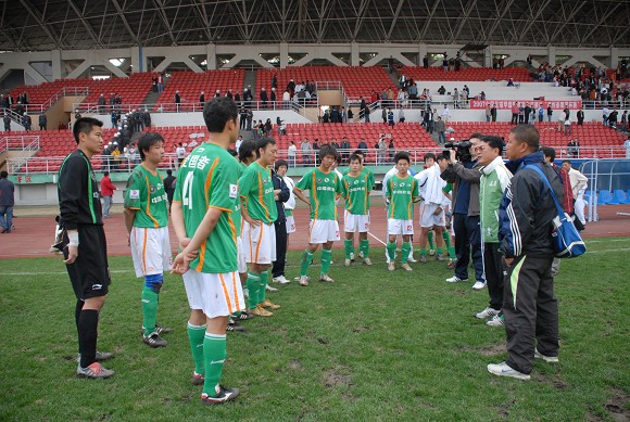 在赛后新闻发布会上金指表示:“对于比赛的结果我很不满意,因为我们的这个失球与上一场与江苏队的失球完全一样,可能我们的队员在经验上还有欠缺。另外就是哈尔滨的天气和主场条件给我们带来了很多麻烦,之前一直下雨导致场地湿滑让我们的队员很不适应。我们的短传配合也没有发挥出来,还有毅腾队打得很凶狠,长传冲吊也很有效,他们的身体也都很好,这样我们的特点就完全被他们抑制了,回去后还要认真总结。”金志扬说。