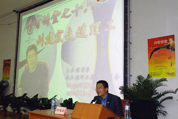 5月21日晚七点“共青讲堂”荣幸地请到了中央电视台著名体育节目主持人刘建宏先生,作为“共青讲堂”第十六位嘉宾来到我校与同学们畅谈足球与人生。当主持人宣布刘先生的到来时,全场响起了热烈的掌声。