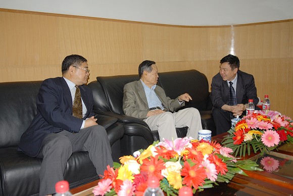 上午9:30,在师生们热切的盼望中,杨振宁先生来到中心教学楼一层报告厅,校党委书记焦文俊教授,副书记、副校长杨宾教授会见了杨振宁先生,并在贵宾室就科技与教育进行了会谈。