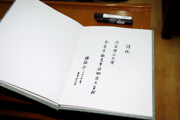 会谈中,杨振宁先生兴致勃勃地为我校题词:谨祝ob真人竞猜为青年教育事业做出大贡献。