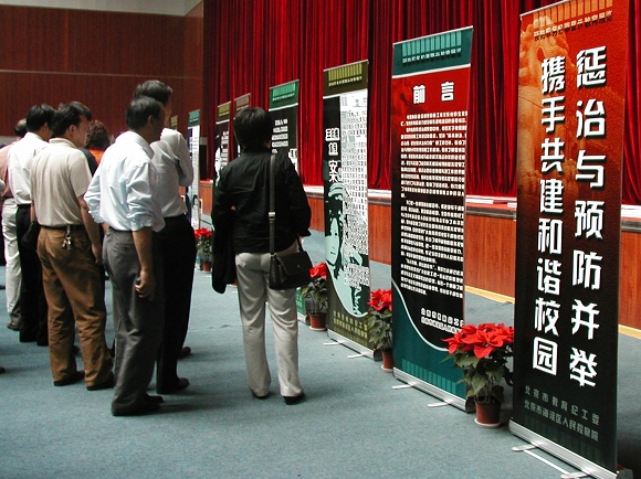 为进一步加强北京教育系统党风廉政建设,促进领导干部廉洁自律、廉洁从政,建设和谐校园,北京市教育纪工委与北京市海淀区人民检察院联合举办了本次“惩治与预防并举,携手共建和谐校园”预防职务犯罪警示教育图片展。图片展披露了检察机关近几年来在教育系统查处的近三十个比较典型的职务犯罪案件。