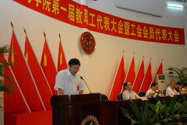 学院党委书记、副院长邓建新同志致开幕词。他说,经过三年的艰苦创业,在珠海学院已经初具规模,各项管理制度基本健全,各项管理体制基本完善之际,学院决定召开此次大会,这表明了学院坚持依法治校、民主治校的工作指导思想,也是按照十六大和十六届六中全会“坚持教育优先发展,促进教育公平”的要求,实践科学发展观,推进和谐校园建设的具体举措。他要求每位代表本着积极负责的态度,站在全局的高度上,充分行使自己的民主权利,以主人翁的精神,为我院今后的建设和发展献计献策,把本次会议开成一个民主团结的大会、求真务实的大会、和谐共进的大会,为我院今后的建设和发展奠定良好的基础。