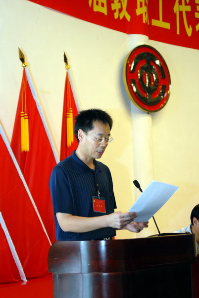 6月15日下午2:30,大会在雄壮的《国歌》声中隆重开幕,校工会副主席王建光同志到会祝贺。大会开幕式由党委副书记、副院长范瀛主持。