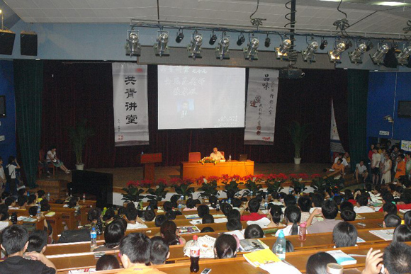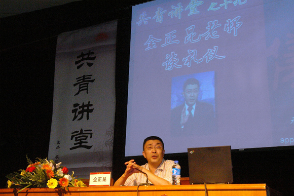 2007年6月26日晚,中国人民大学国际关系学院金正昆教授来到我校,作为“共青讲堂”大型名家系列讲座第十九位嘉宾,为广大师生带来了精彩的演讲,向大家讲解礼仪之道。金教授是国内著名的礼仪专家,是国内高校开设礼仪课程第一人。金教授深受我校广大师生的喜爱,讲座于18:45准时开始,偌大的会场在开场前一个小时已经座无虚席。党委组织部副部长李跃华老师等参加了讲座,并于讲座开始前和金正昆教授进行了亲切交流。